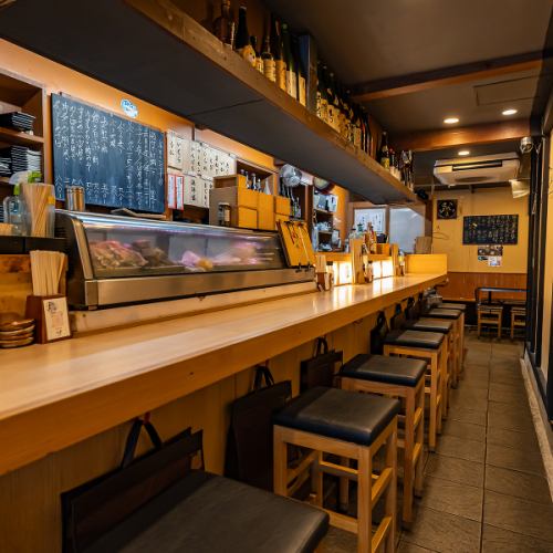 自慢のお酒を眺めるカウンター席◎日本酒・焼酎他、握りなどでお召し上がりいただけ、ワインも充実のラインナップをご用意しております◎少人数やちょっとした飲み会におすすめ!